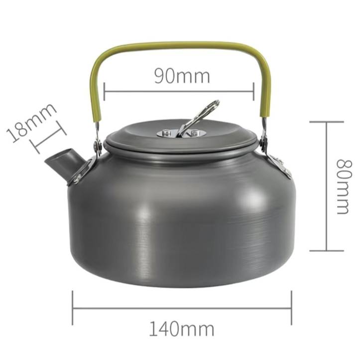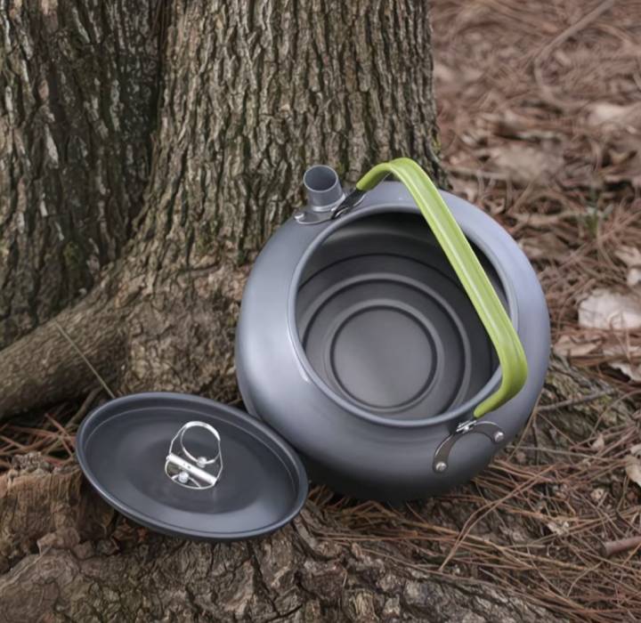 Легкий и портативный чайник в сочетании с сетчатым карманом, удобный для переноски, подходит для кемпинга, пикников, походов и других мероприятий на свежем воздухе.