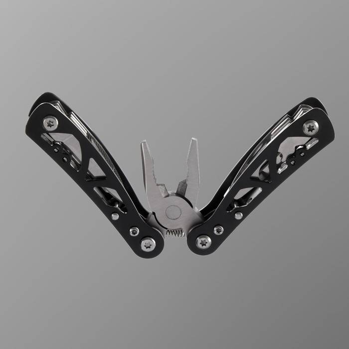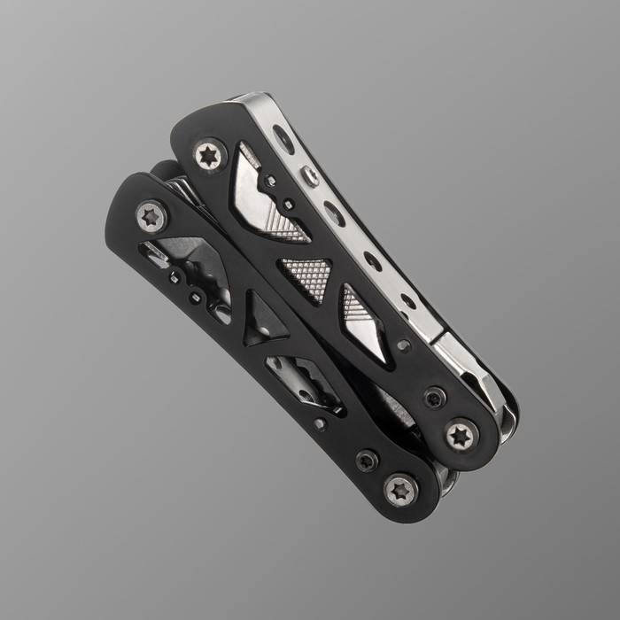 13 функций: Включает плоскогубцы, кусачки, набор отверток, нож и дополнительные инструменты