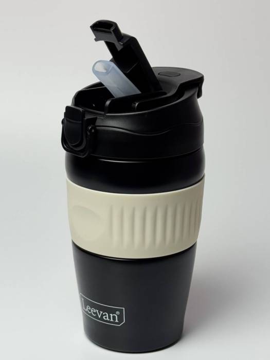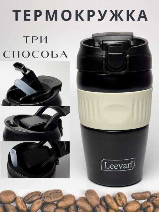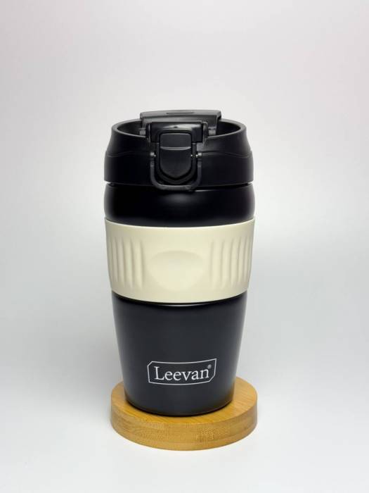 Термокружка "Leevan" 0.4 л, бежевый и черный